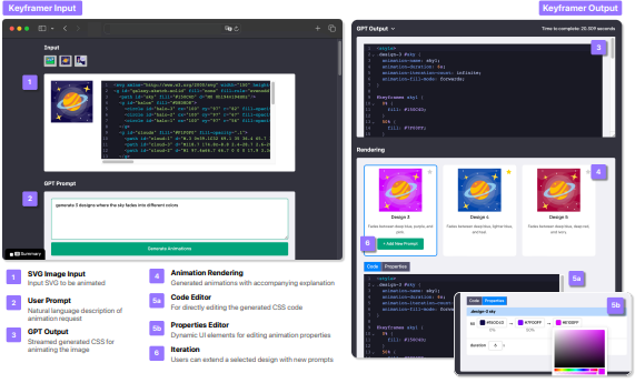 Keyframer flexes some serious muscle in the versatility department. Whether you want subtle tweaks or a complete overhaul of your animation, it’s got you covered with its different editor types. The beauty of it all? You just keep on building with each prompt or start fresh based on your last masterpiece.
